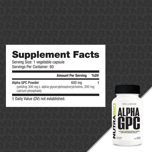 NutraBio Alpha GPC – 300mg – 60 Vegetable Capsules